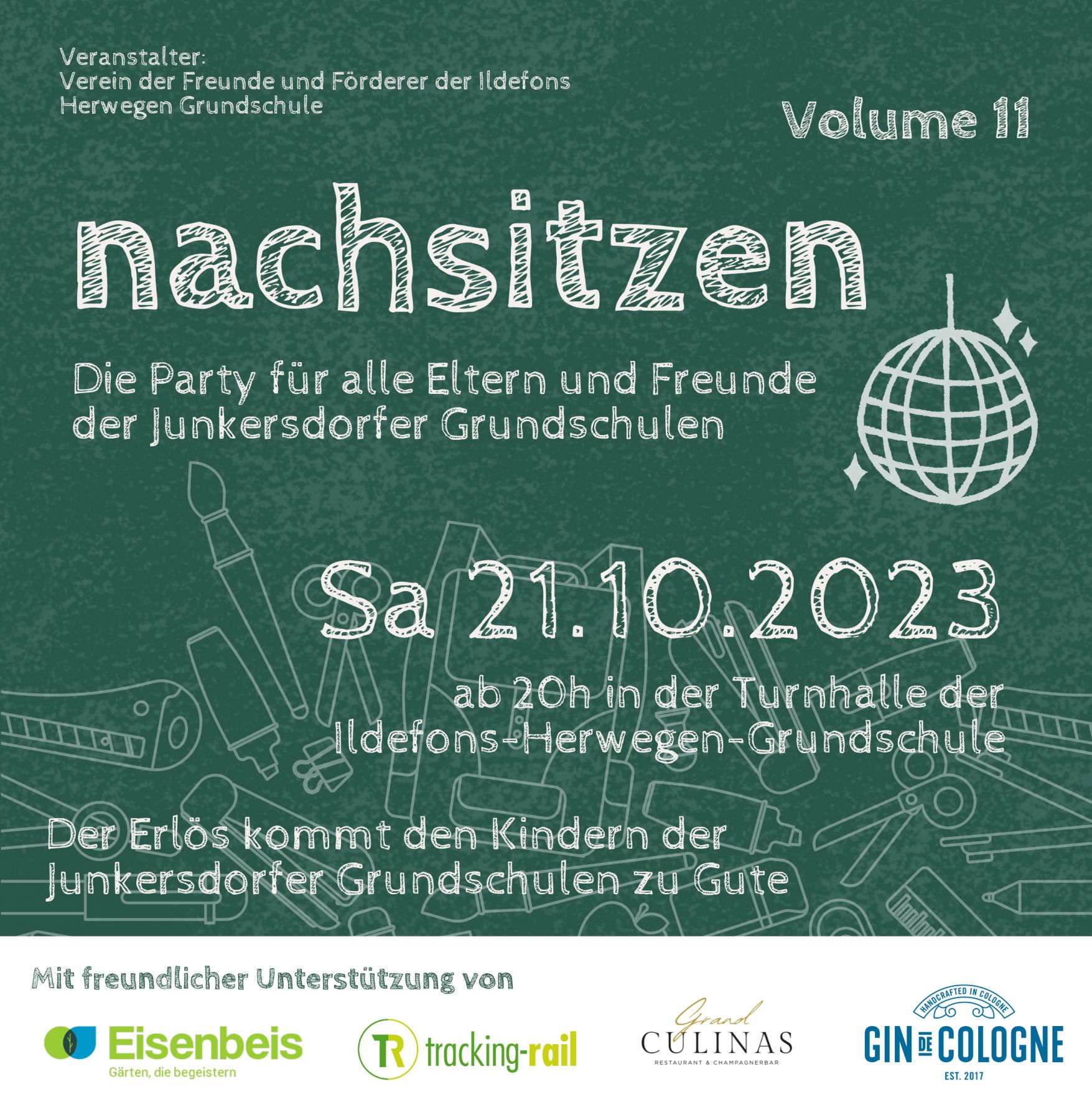 Die Party für alle Eltern und Freunde der Junkersdorfer Grundschulen startet um 20 Uhr mit heißen Beats und kühlen Drinks in der Turnhalle der IHS. Alle Erlöse kommen den Kindern der Junkersdorfer Grundschulen zu Gute.